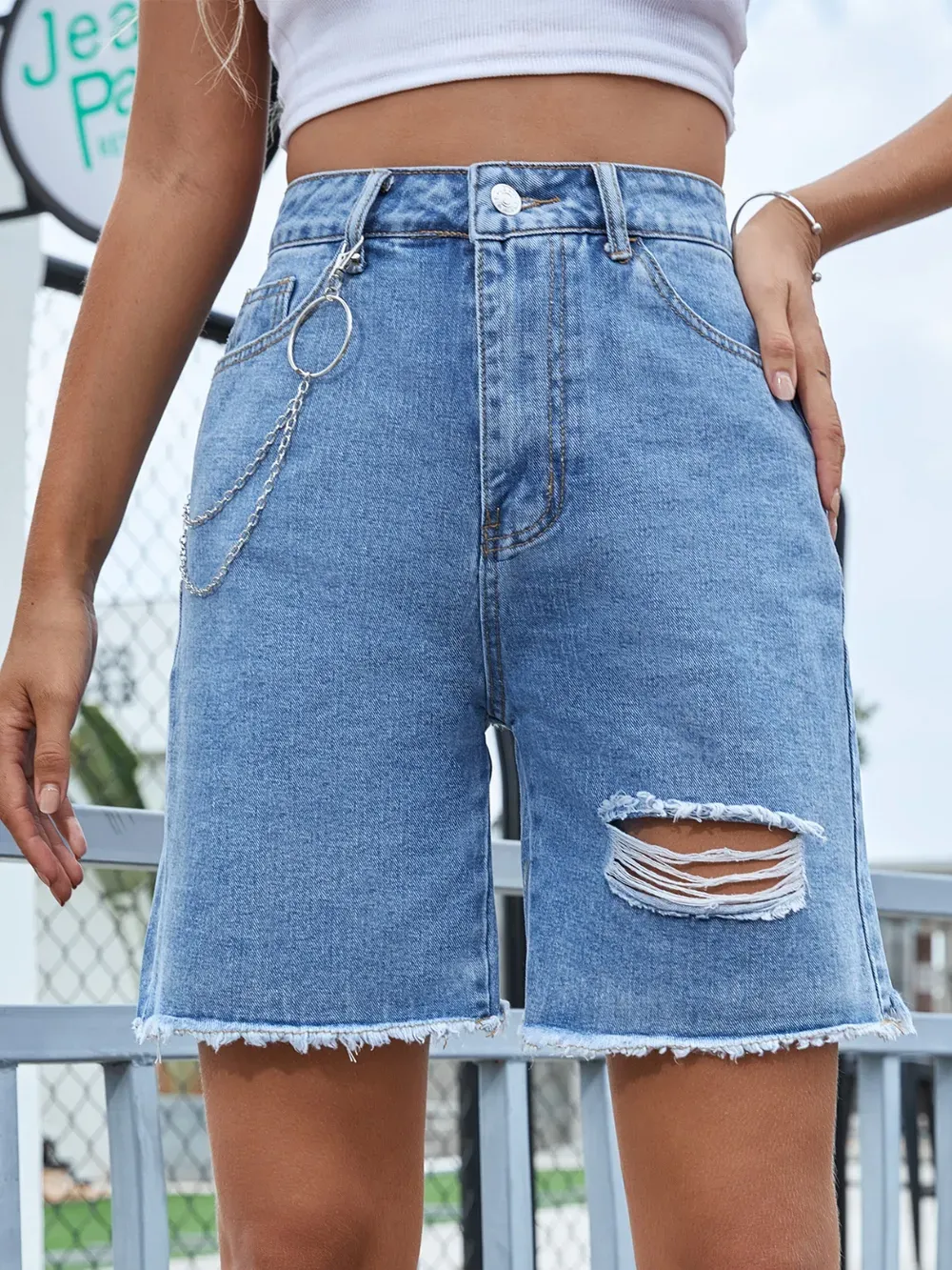 Features: Buttoned, Raw Hem, Distressed