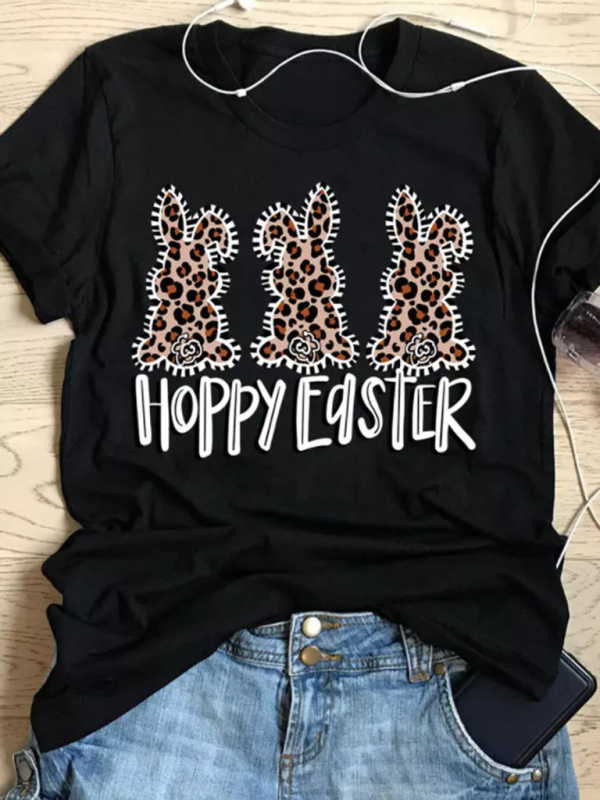 New Leopard Easter Women's Bunny Print Tops T-Shirt
