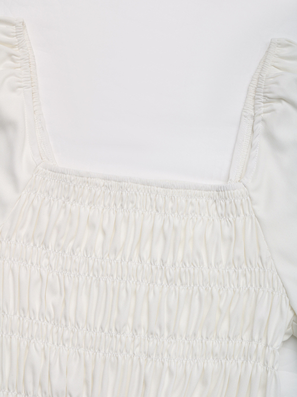 Casual Puff Sleeve Shirt Square Neck Embroidered Shirt