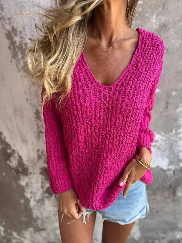 New Chunky Flower Knitted V-Neck Lazy Long Sleeve Sweater