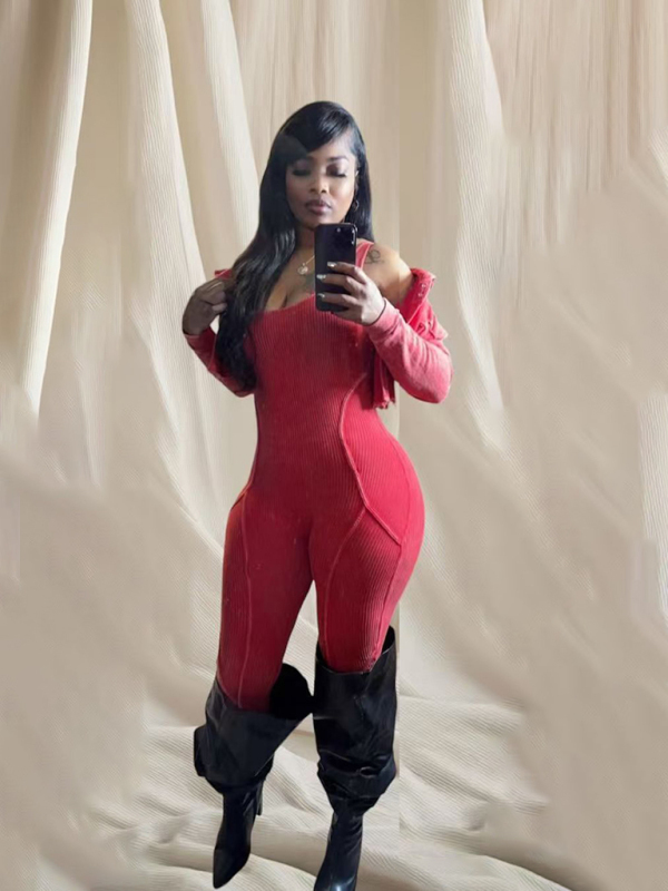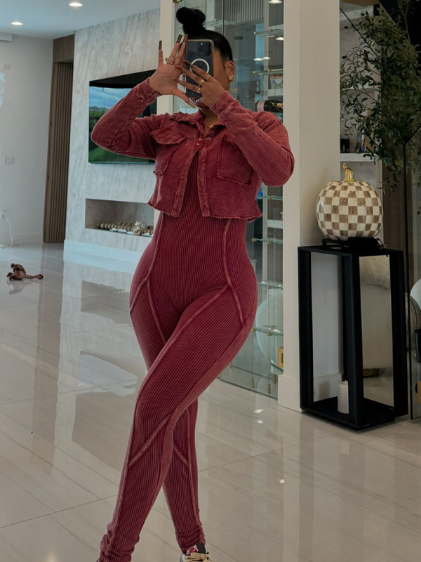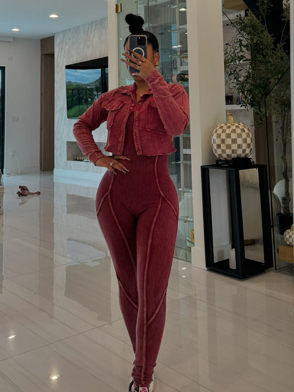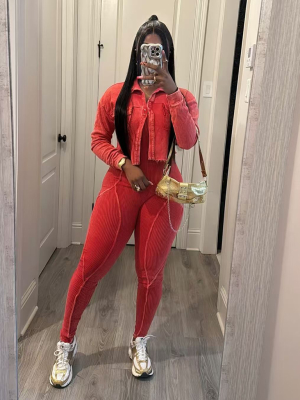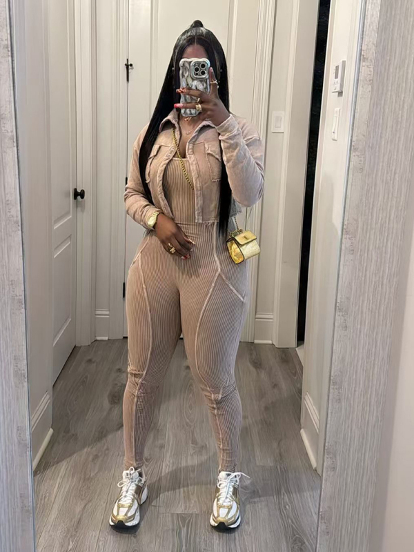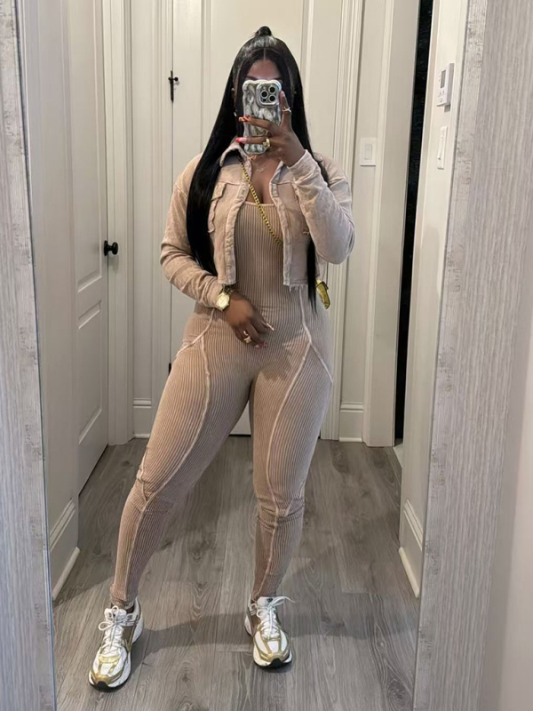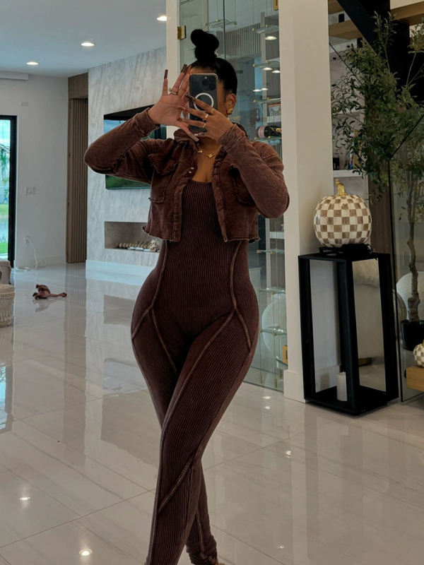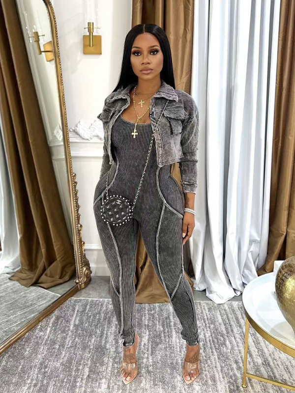 New Fashion Women's Distressed Jumpsuit Two-piece Casual Set