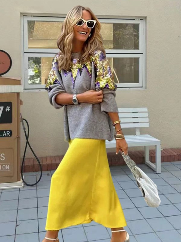 New Sequined Colorful Jacquard Pullover Knitted Women's Sweater