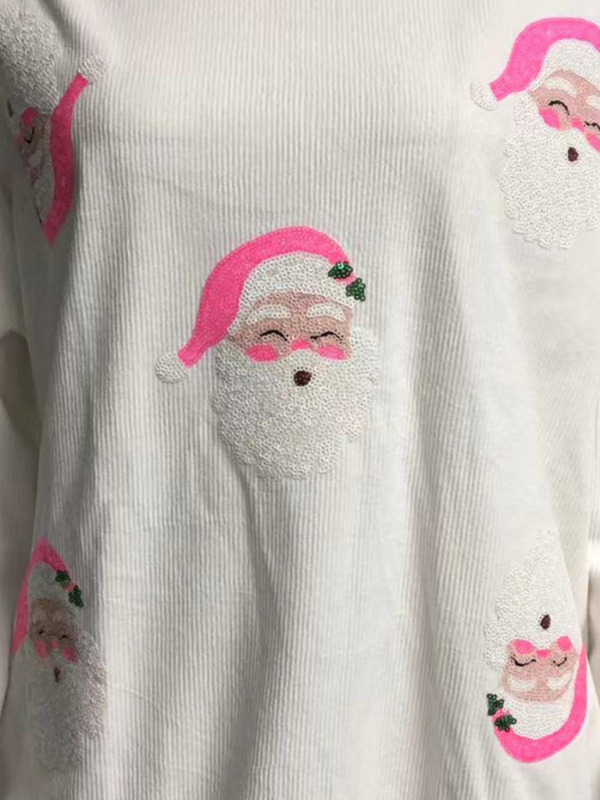 New Women's Santa Claus Sequin Embroidery Loose Casual Long Sleeve Sweater