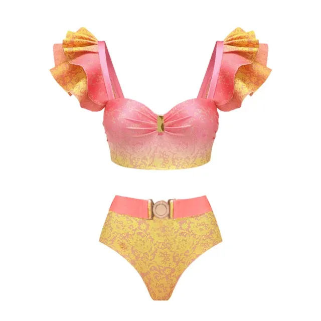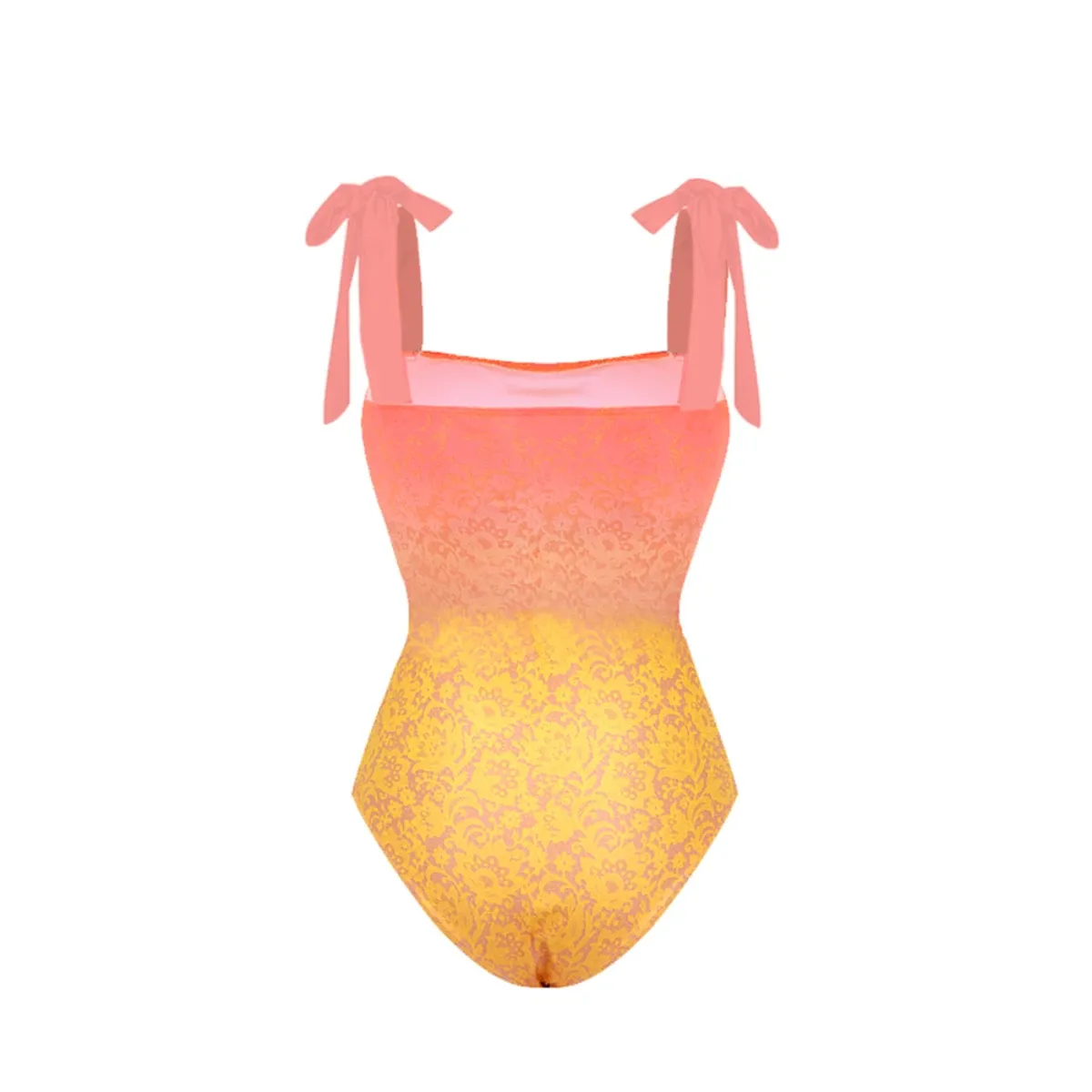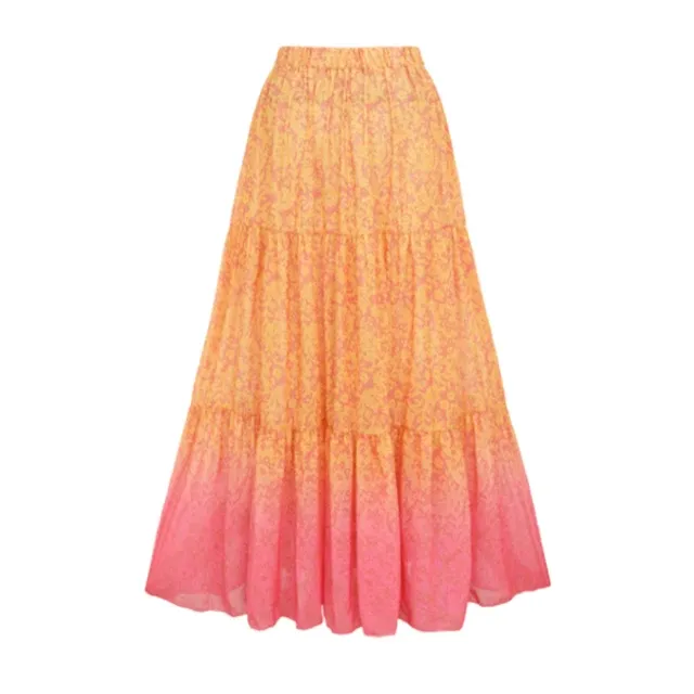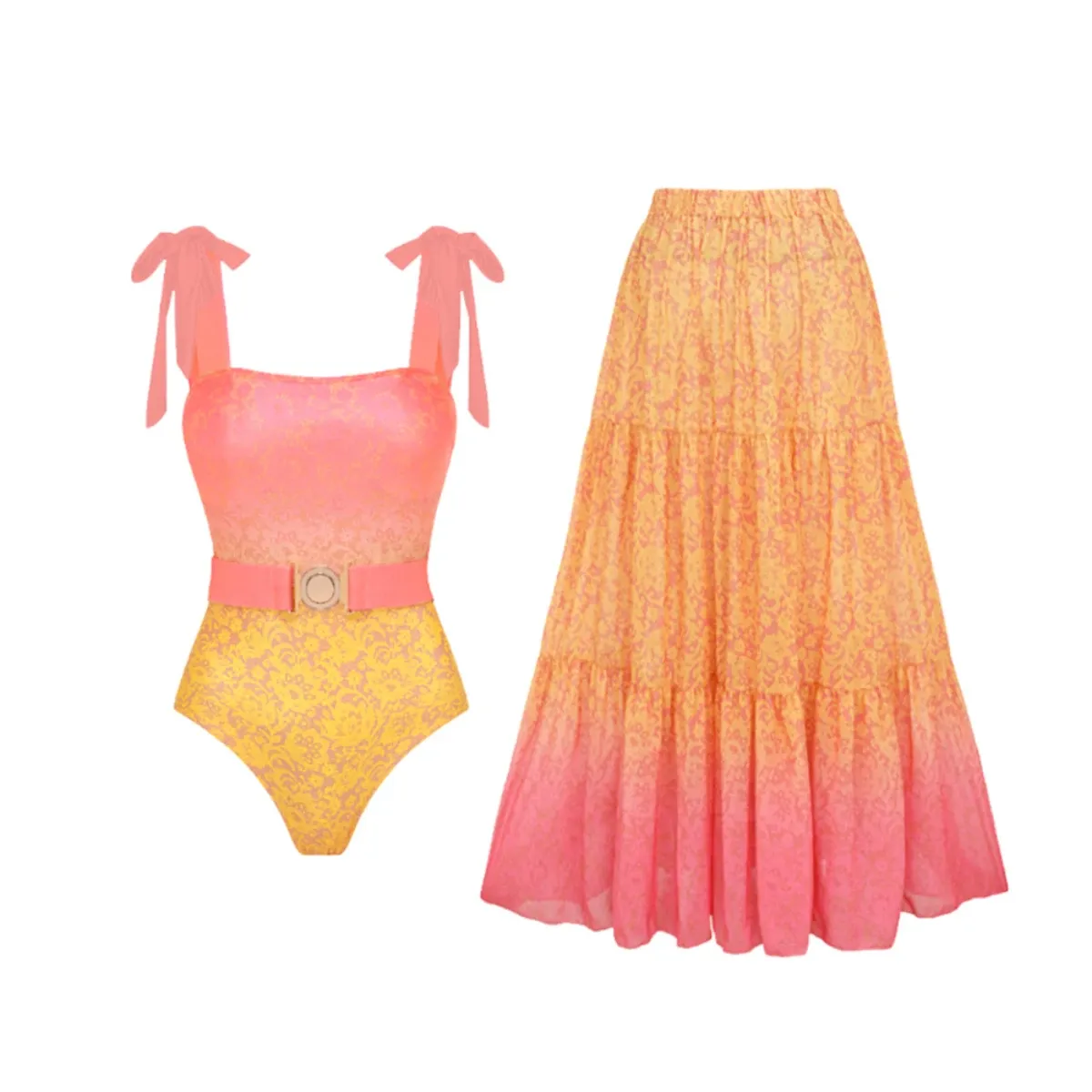 Gradient printed one piece swimsuit women's half skirt two-piece set